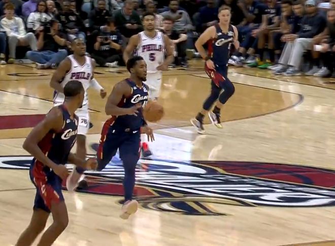 首节开打,米切尔突破吸引包夹,助攻加兰命中大空位三分,投进本赛季个人首球。马克西连续失误,米切尔连续强投三分命中,骑士开局打出17-4,直接打停76人。乌布雷强打篮下造犯规,及时止血,随后接球再中空位三分,一人连拿6分将分差缩小至9分。骑士连续送出击地妙传,莫布利篮下接球双手暴扣终结,随后小南斯跳投三分不中,阿伦二次进攻想要扣篮,德拉蒙德跟防送上个人本节第三次封盖,首节打完, 骑士41-27领先76人14分。