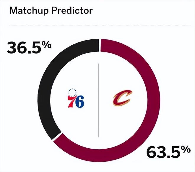赛前,美媒ESPN对本场比赛进行了胜率预测,骑士胜率为63.5%稍占优势,76人胜率则仅为36.5%。首发阵容方面,76人队这边,乔治继续缺战,恩比德也不打了,主帅排出的首发五人组为:马克西、VJ.埃奇库姆、乌布雷、贾巴里-沃克、阿德姆-博纳;骑士队这边,首发阵容则为:米切尔、加兰、阿伦、莫布利、杰伦-泰森。