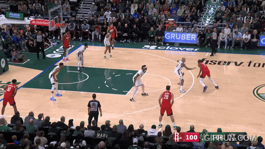 阿门龙精虎猛打三分之外,这球妙在扬尼斯被贾巴里牵扯在底角,无法补位。