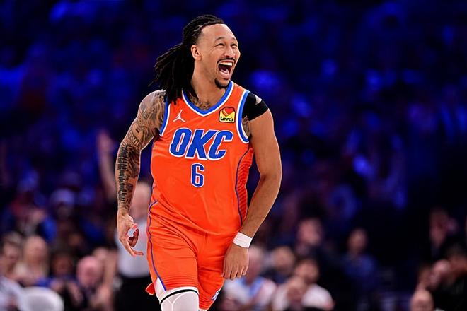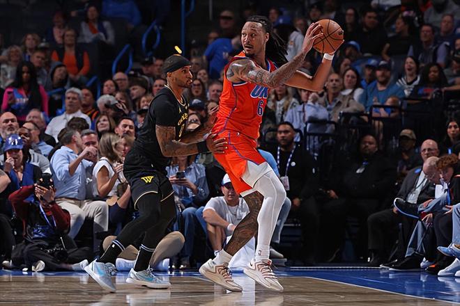 本场比赛中,雷霆的替补内线球员杰林-威廉姆斯(Jaylin Williams)的表现也是相当不错的。威廉姆斯全场出场30分02秒,投篮7中4,三分线外5中2,罚球3中2,得到了12分6篮板5助攻1抢断的数据,还有2次失误和2次犯规,正负值为+10。威廉姆斯在进攻端展现出了全面的得分能力,他也是抓住了机会得到了不少分数,为球队提供了不少的支持,他的进攻效率和手感也是有了明显的恢复。威廉姆斯在传球和策应方面也是起到了很好的效果的,他在防守端的表现也是中规中矩的水平。总体来看,威廉姆斯在本场比赛中算是轻轻松松完爆了勇士的内线,他的不俗表现也是球队能够取得这样一场大胜的重要因素。